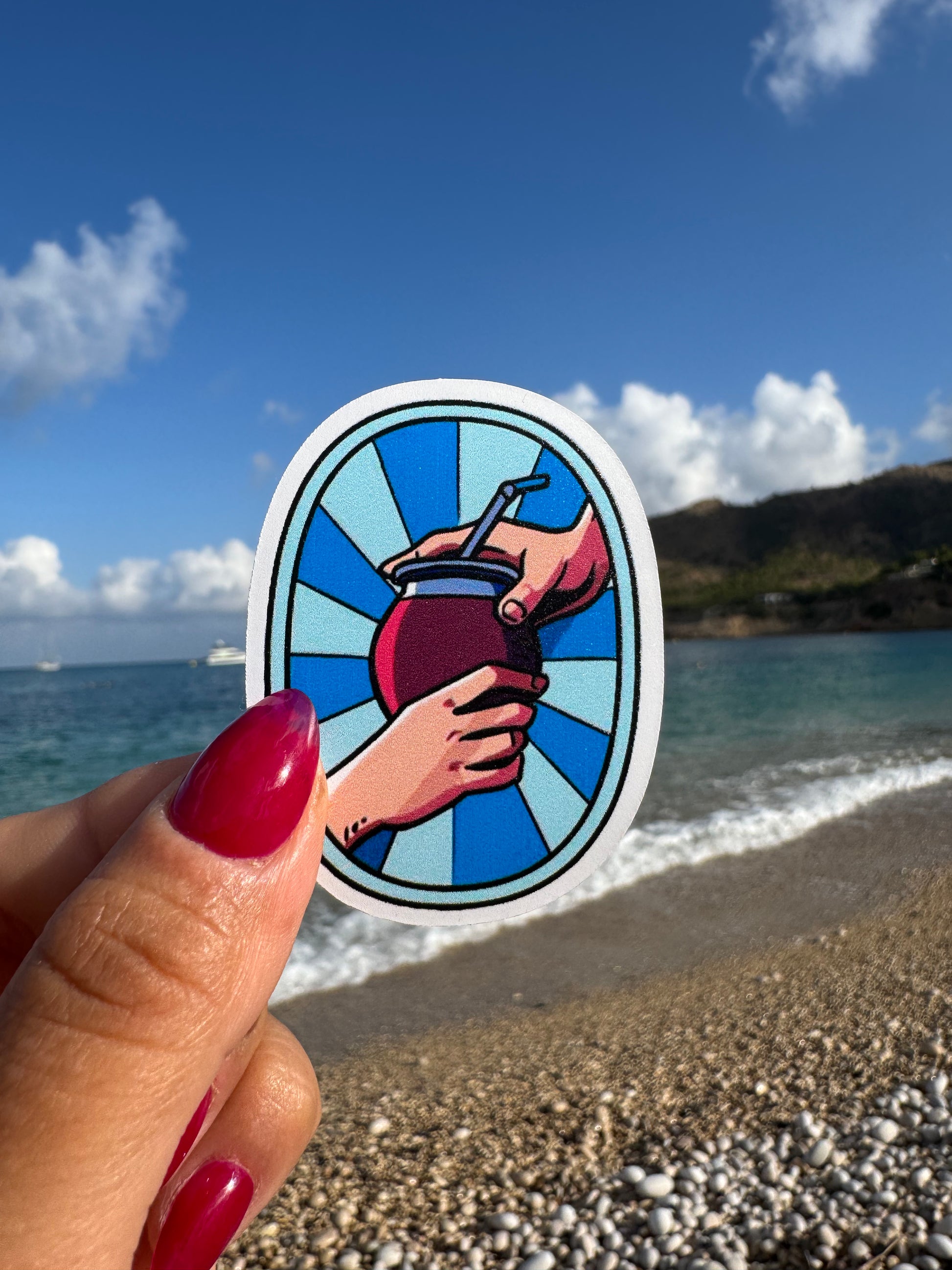 Este sticker de vinilo UV nació para vivir en tu termo: Resistente al agua y al sol. Los colores no se decoloran y el material no se rasga ni se rompe, así que podés pegarlo y olvidarte…😉