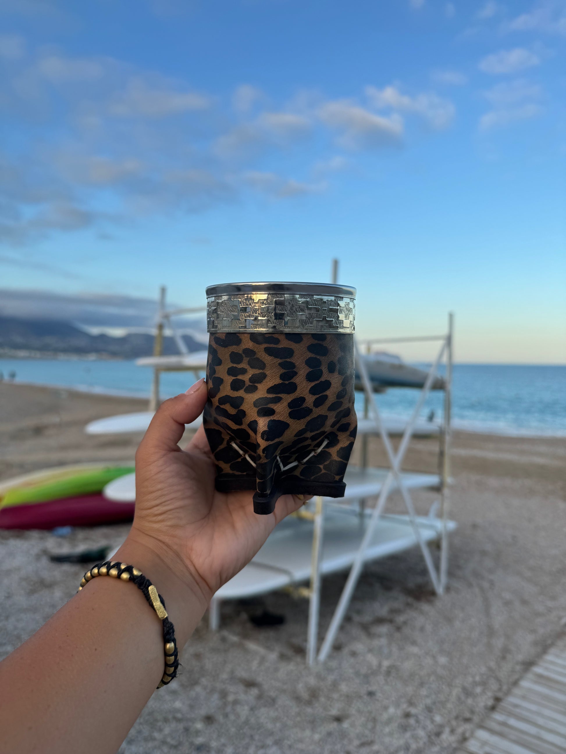 Con su estampado animal print, patas metálicas y virola labrada a mano, este mate no se esconde: se luce como un complemento más de tu estilo 💅