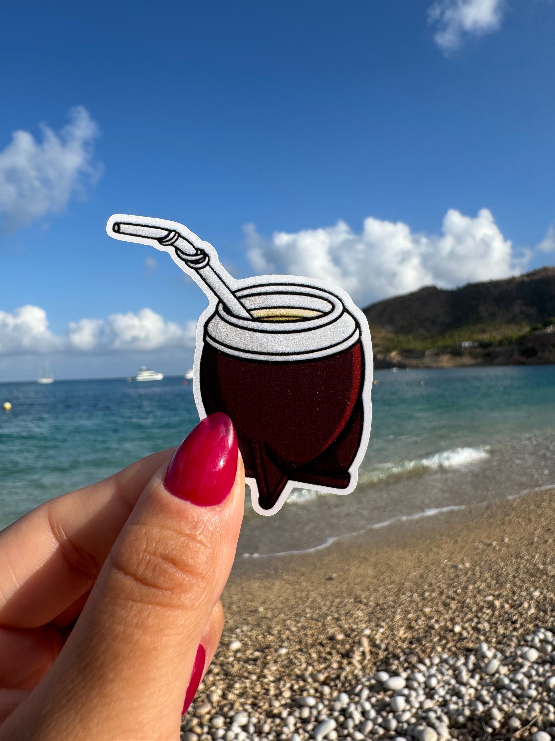 Este sticker de vinilo UV nació para vivir en tu termo: Resistente al agua y al sol. Los colores no se decoloran y el material no se rasga ni se rompe, así que podés pegarlo y olvidarte…😉